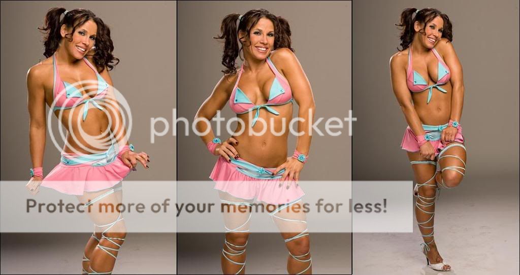Only thing is, will they (TNA Management) expect Mickie to shed some lbs. before they let her compete in such skimpy attire??? Part of me says that might not be such a bad idea, the other part says, ah, wtf, go for it...