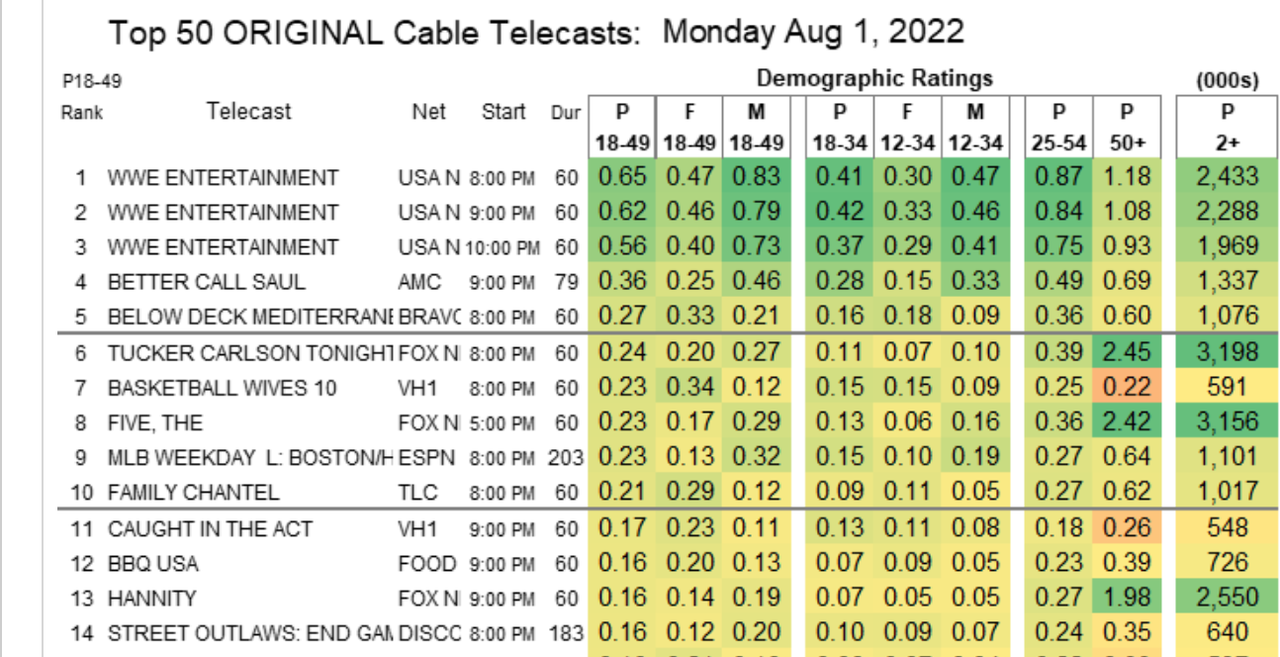 It was pushed on TBS and everyone in the IWC knew it was taking place. It’s a pretty “meh” number when you put it into context. It doesn’t bode white hot for ROH getting its own television deal, or anything close to what AEW has. It’s about 36% of what AEW does, which isn’t crash hot as it is. It’s not a 1:1, and AEW converts a lot of their television viewers to PPV buyers, but extrapolating that relationship to a TV deal and you’re probably looking at <400k viewers.