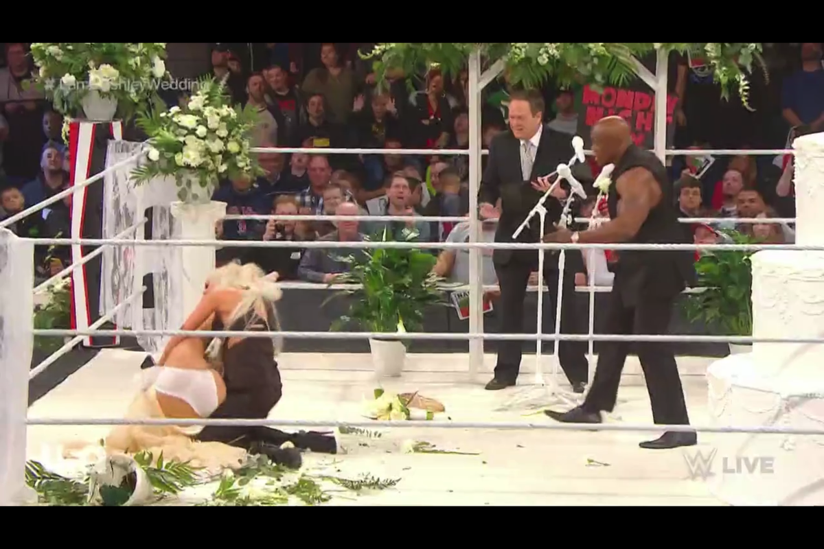 They should make the wedding officiant the 3rd Raw commentator