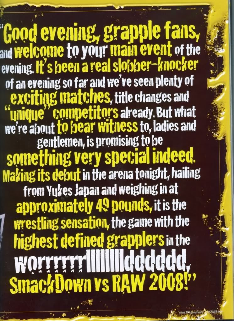 If they had the option to eliminate VO and do a text-based season (with different storylines to go through and all that, while caryring data from past seasons), it'd be pretty awesome. I did at least a dozen seasons in HCTP and I always had a blast checking the stats of the other wrestlers. I would shake the rosters up too, just for the hell of it. |