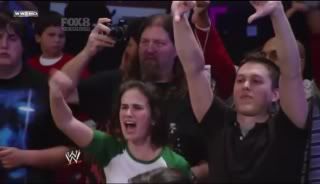 Now tonight we were watching the Smackdown from Green Bay, Wisconsin. Wade Barrett had just cut a promo on the Elimination Chamber and Rey Mysterio. The camera then cut to a close-up of her and I from the April 30th, 2010 in Herhsey, PA. The same footage that was shown of us 10 months previous. Her in the green and white shirt, myself in the black polo for several seconds. Barrett's music continues to play in the background, as if her and I, Pennsylvania residents who didnt attend, where at the show. If you happened to DVR Smackdown tonight check it out.