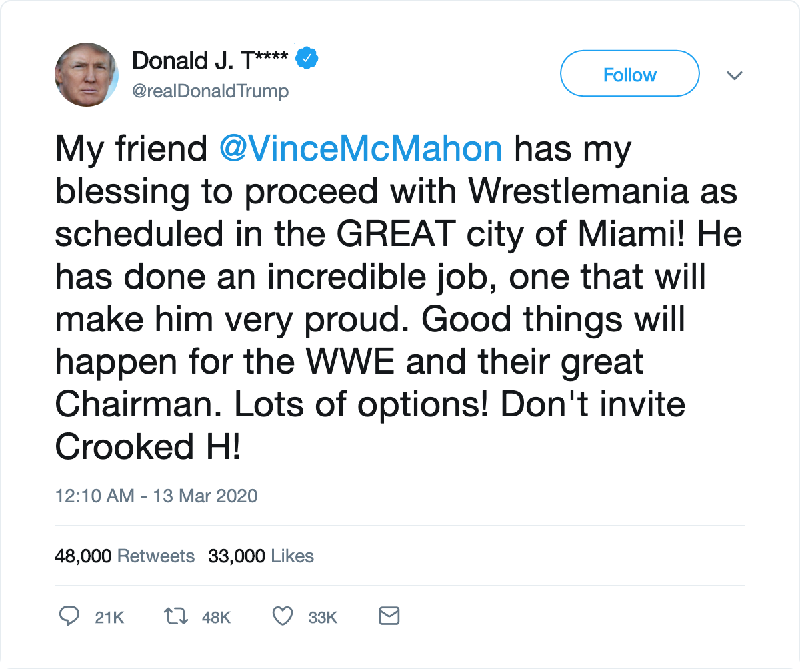 A lot of people on twitter expecting Trump to 'pardon WrestleMania'
