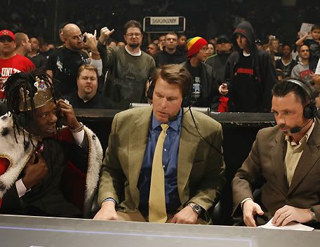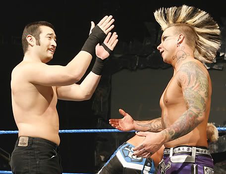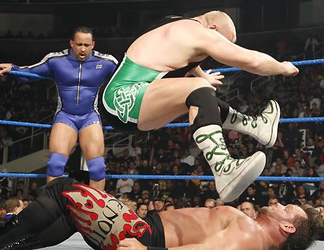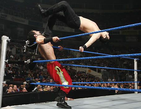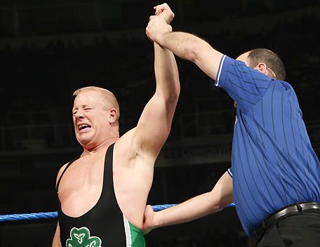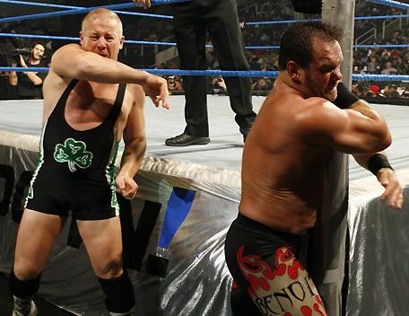 Can I please get a countdown.... ![]() 1... ![]() 2... ![]() 3... ![]() 4... And so our tale of this weeks Smackdown begins... ![]() Finlay's age catches up to him and his back gives out, leaving him wheelchair bound. ![]() Oh gosh! What are we going to do for tonights main event!! ![]() This is a dark night, our hearts and prayers are with Finlay tonight. We are going to have to cancel tonights show unless someone can step up for the injured Finlay.... ![]() "I'll save your show." ![]() Suddenly, he leaps vertically and does a corkscrew above the ring... ![]() He lands a huge kick to the face and picks up the pinfall victory. ![]() Shannon: Hey, that was pretty damn good Fan: Yea, plus I'm this big. Shannon: Aye carumba, wanna be my tag partner? ![]() ...a stable is formed. ![]() THIS IS HORSESHIT!!! NOT A DAMN ONE OF YOU KNOW HOW TO WORK A FUCKING MATCH! AT LEAST WE CAN EDIT THIS BY FRIDAY. YOUR ASSES ARE FIRED!!!! ![]() Well who the fuck is gonna job to me then Vince? I need someone to squash. ![]() Oh gosh! I've done it again, I fired all the jobbers. What am I ever gonna do now!!! HELP! ![]() LOOK UP IN THE SKY!!! ![]() It's a bird... ![]() It's Owen Hart.... ![]() NO, It's CHRIS BENOIT!!!!! ![]() Folks we have to go now, thats all the time we have. Tune in next wee.... *broadcast ends* To be continued.......... |