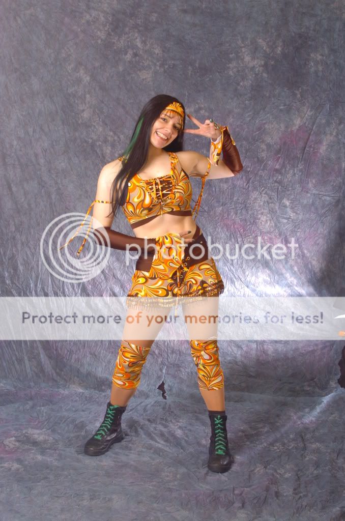 I don't know who they hell they are, but the dark haired one is wearing Mae Young leggings and also sucking in her stomach. I don't why she'd do the latter considering how not big at all she is.