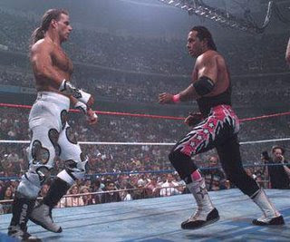 In the build up to the moment, we start at Royal Rumble, a year earlier. Shawn Michaels and "The British Bulldog" Davey Boy Smith were numbers 1 and 2, and lasted till the end. Davey Boy thought he had eliminated "The Heartbreak Kid", however Michaels held on to the top rope and only one of his feet touched the floor. Michaels won the rumble and went on to Wrestlemania to face an Uber face, Big Daddy Cool, Diesel for the title. Along the way, Michaels recruited Sid as his body guard in the angle. At Wrestlemania XI, Shawn was unable to beat Diesel (He'd hit Sweet Chin, however Sid had "inadvertantly" distracted the referee). The next night on Raw, Sid attacked Michaels, leaving him out of action until June 1995. This absence was, according to some people, so that Shawn Michaels could return a face.